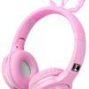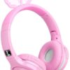 Kids Wireless Headphones, Boys Bluetooth Headset Adjustable Headband with Mic, Stereo Sound Childrens Bluetooth Headphones Over Ear for School Home, Travel (3.5mm Jack Audio Cable Included) (Pink)