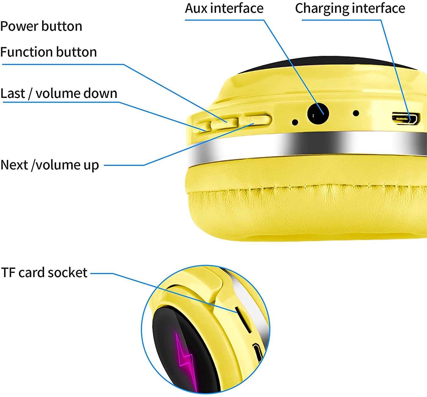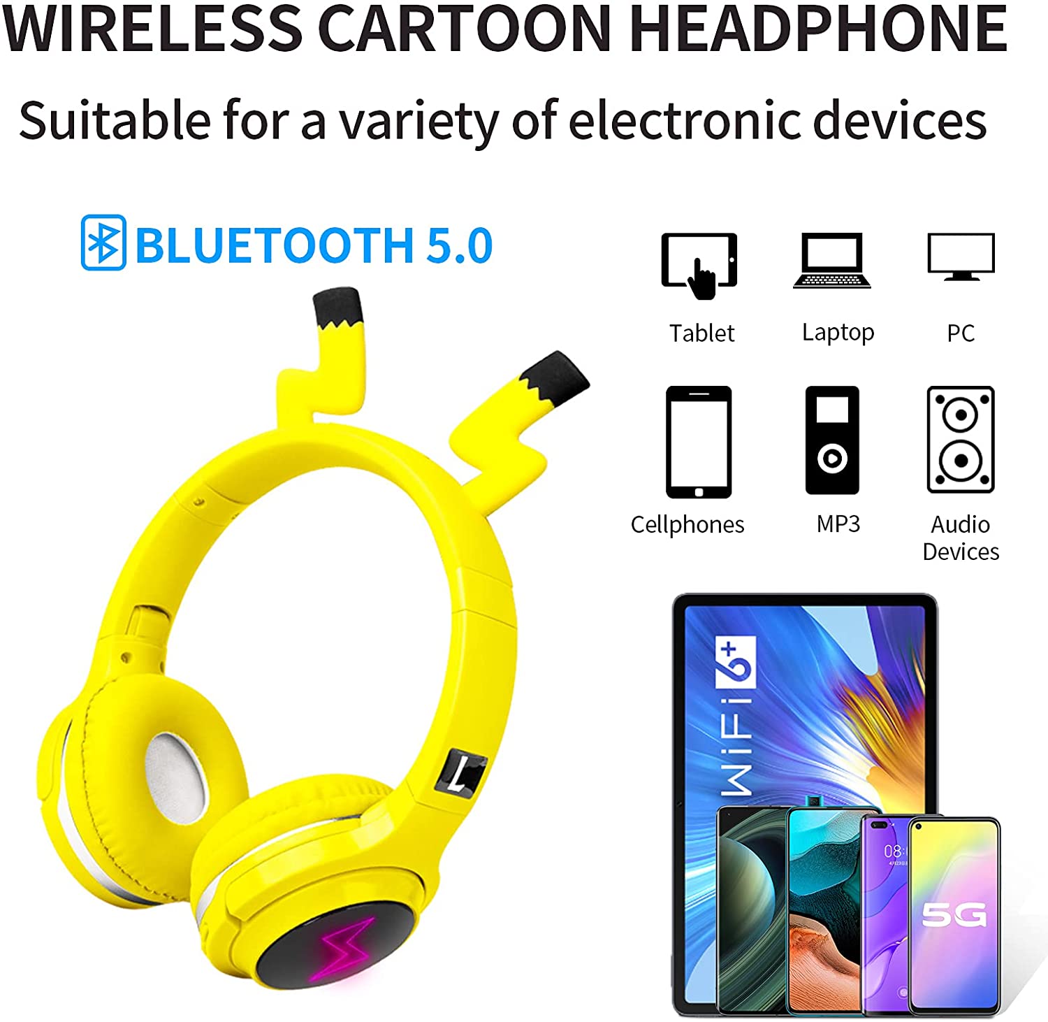 Wire & Wireless modeг Built-in rechargeable battery allows up to 8 hours of continuous playtime. Bonus detachable 3. 5mm Audio cable connects to any device with a headphone jack. Bluetooth 5.0г Powerful 40mm speaker with the bluetooth 5.0 technology, providing you the needs for quality natural sound and strong bass while keeping convenient. Once you done the matching, you can save the hassle for matching again. Stereo HD Sound & Built-in Micг The Over-Ear headphones provides stereo Hi-fi level sound quality and strong bass. Superior sound quality helps you enjoy your music better. Build-In Microphone and Volume Control let you to answer calls and play/pause a song by pressing the button. Professional Soft Earpads & Convenient Foldable Designг The super soft earpads can give you the maximum comfort regardless even wear for a long time. The headphones can stretchable length that fit for the heads from 10 year old children to adult. Foldable headband and portable size suite for daily use and outdoor travelling. Wide Compatibility & WarrantyгThe kids headphones works with almost all smartphones, tablets, computers, such as iPad, iPod, iPhone, android cell phone etc. You are entitled to enjoy 6 month replacement warranty and 24-hour customer support service. Any questions please feel hassle-free to contact usгЂ‚