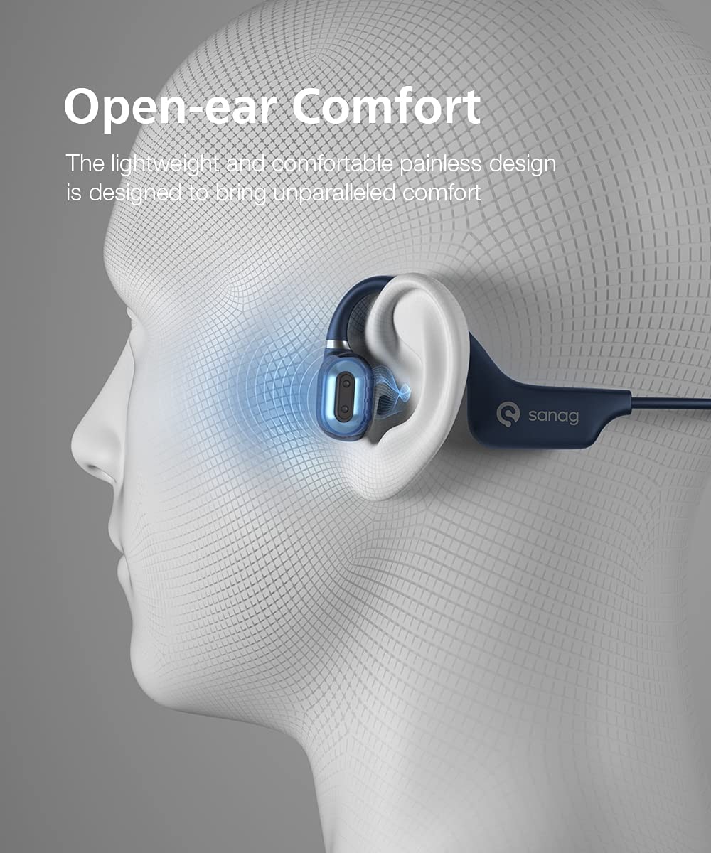 Open-Ear Wireless Earphones Air Conduction Headphones Bluetooth 5.0 with Mic,Titanium Lightweight,Waterproof,Music Answer Phone Call for Running Hiking Driving Cycling