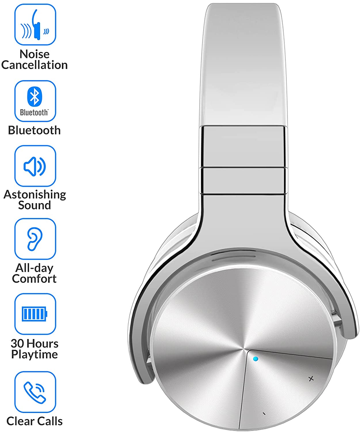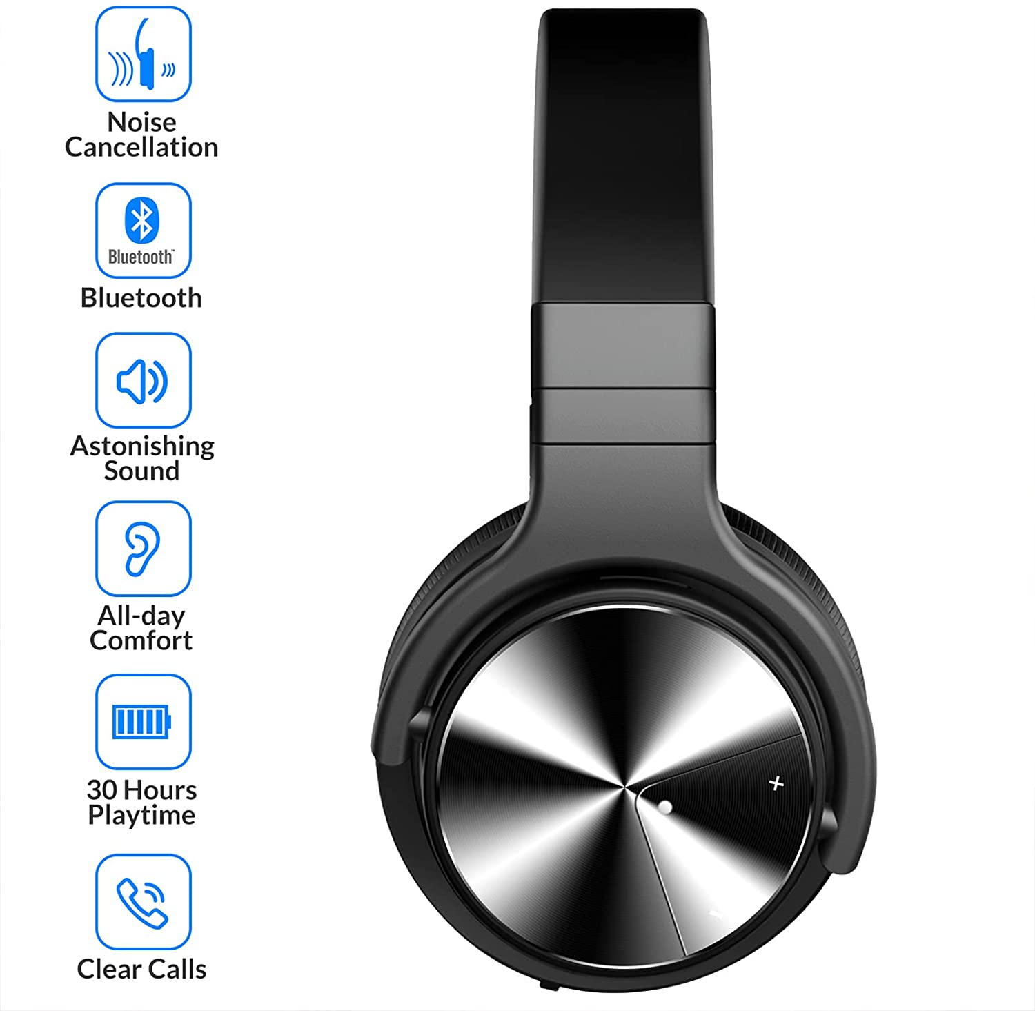 Silensys E7 PRO Active Noise Cancelling Headphones Bluetooth Headphones with Microphone Deep Bass Wireless Headphones Over Ear, Comfortable Fit, 30H Playtime for TV/Computer/Cellphone, Black